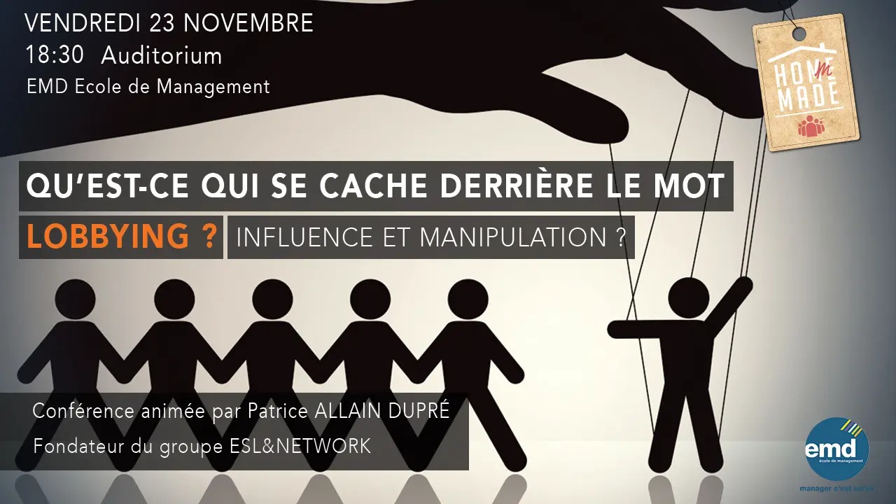 Créé à l’initiative d’étudiants de l’EMD en 2014, Homme-Made est un cycle de conférences annuel qui invite des spécialistes d’univers variés, pour témoigner et approfondir des thématiques différentes.