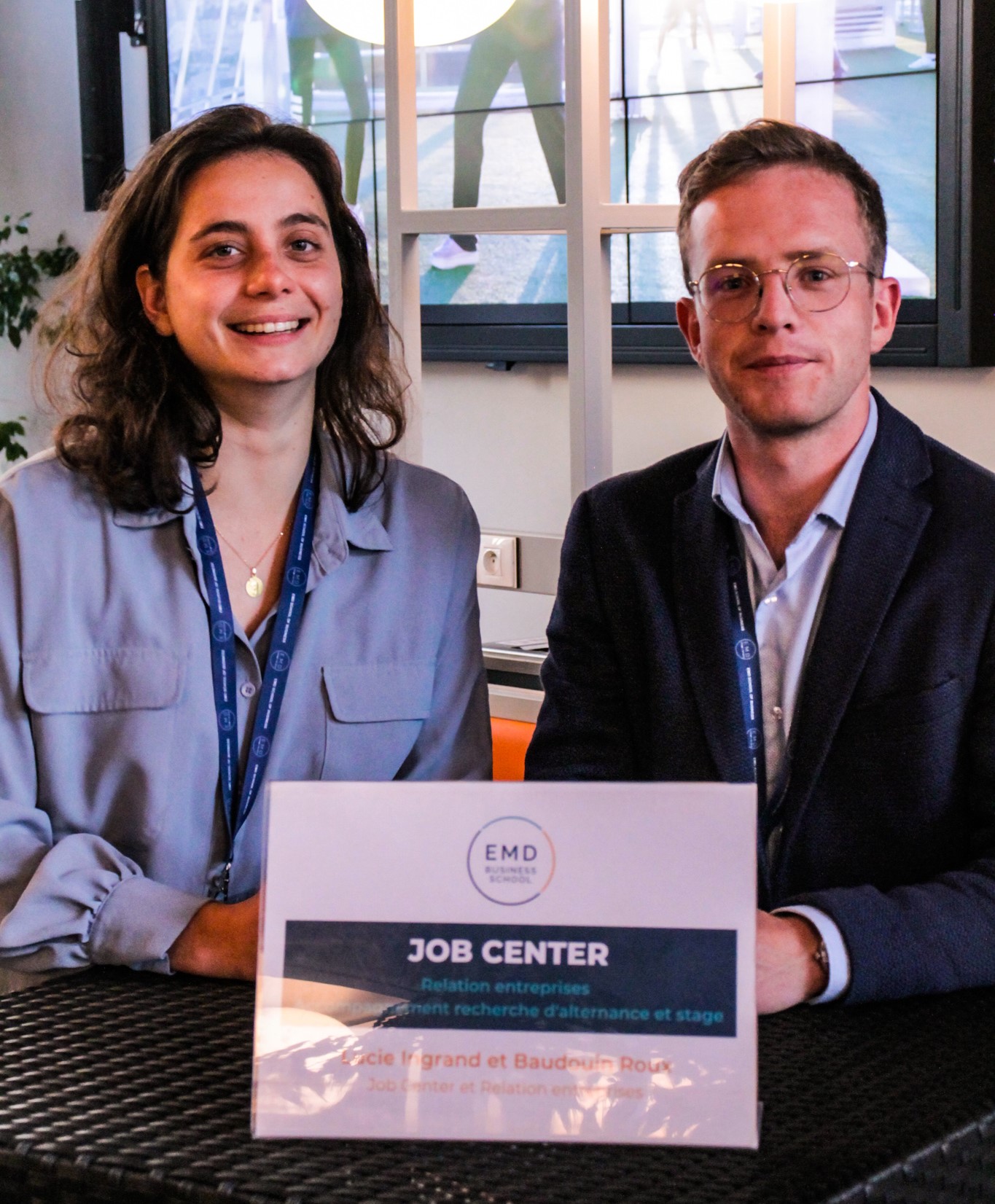 Le Job Center de l’EMD, école de commerce et de management à Marseille, est incontournable ! Présent tout au long du parcours des étudiants, ce service les accompagne dans leur recherche d’alternance, stage, job étudiant et par la suite, un CDI. Rencontre avec Lucie Ingrand et Baudouin Roux, anciens élèves de l’EMD et maintenant chargés des relations entreprises au sein du Job Center de l’EMD.