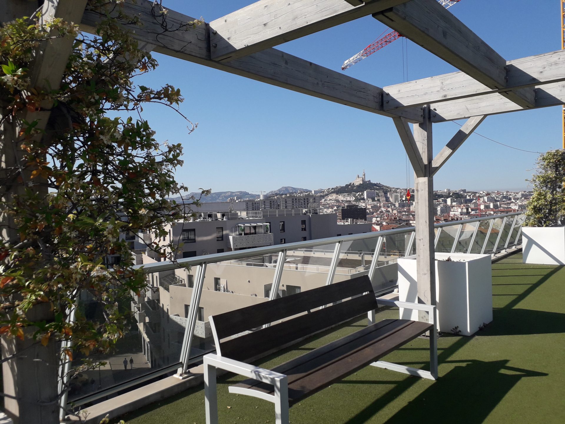 Vous y jouissez de la vue panoramique à 180° de la Côte bleue au massif des Calanques en balayant au passage Marseille et ses monuments historiques : Basilique Notre Dame de la Garde, Porte d’Aix, Cathédrale Sainte Marie Majeure.