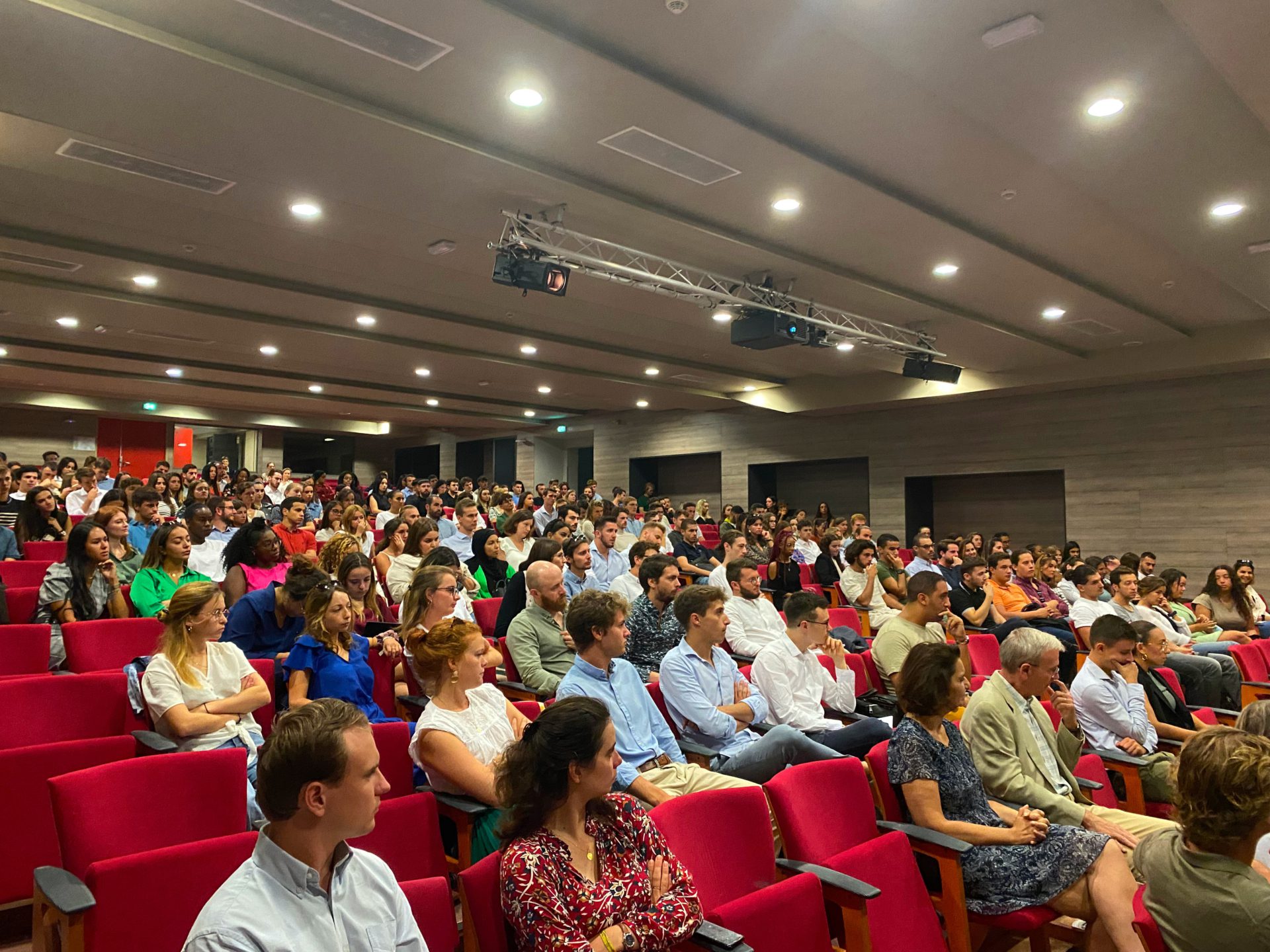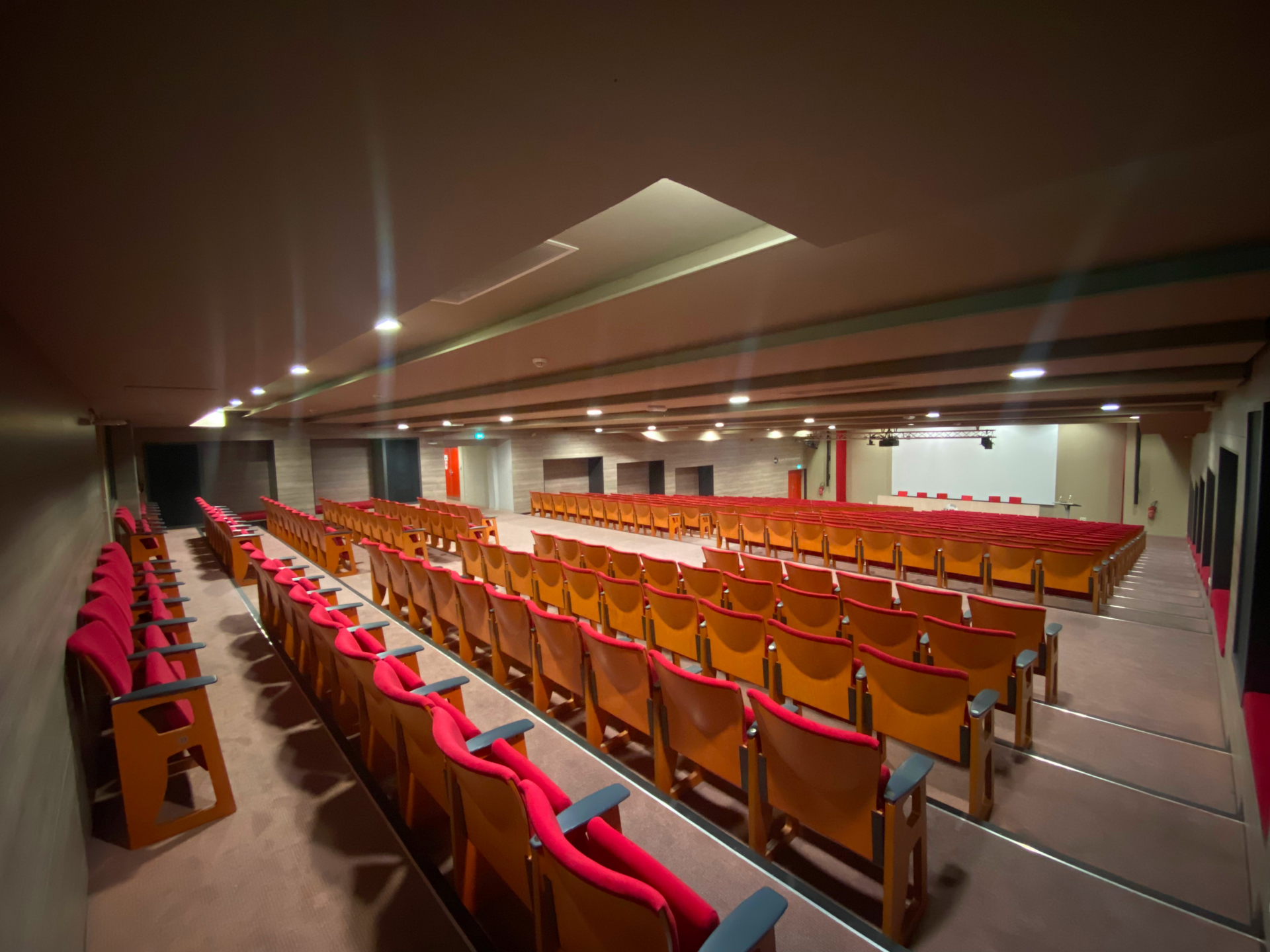 Auditorium climatisé pouvant accueillir 400 personnes, avec vidéoprojecteur et sonorisation, le régisseur de salle est là pour gérer le son, l’image et les lumières de vos colloques, conférences, séminaires, matinales, cérémonies ou débats.