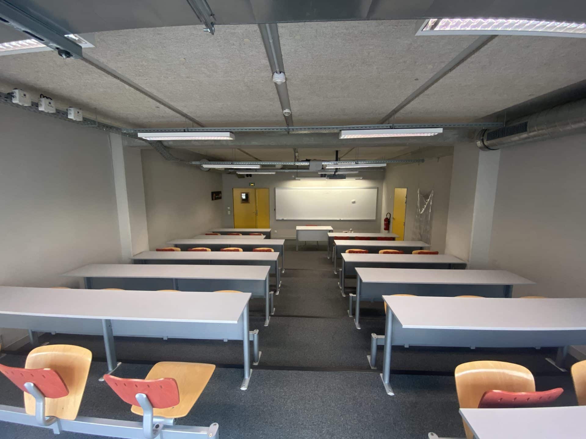 Une dizaine de salles de formation (42 à 141 m2) climatisées pouvant accueillir 32 à 45 personnes, muni chacune d’un tableau et vidéoprojecteur.