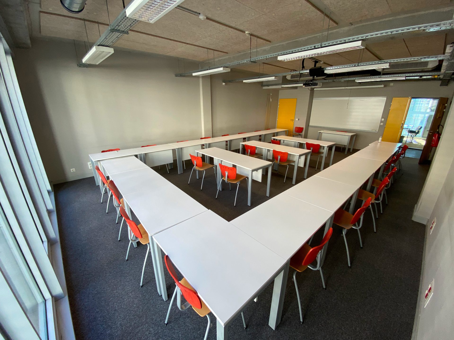 Plusieurs d’entre elles sont modulables en U, réunion pour accueillir idéalement un meet up, hackathon, réunions, jurys, afterworks, rendez-vous commerciaux, etc.