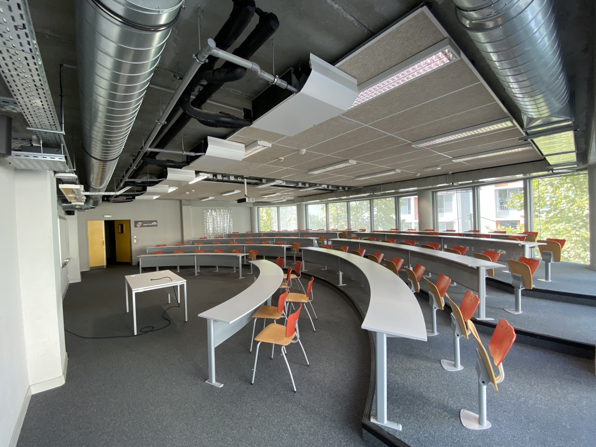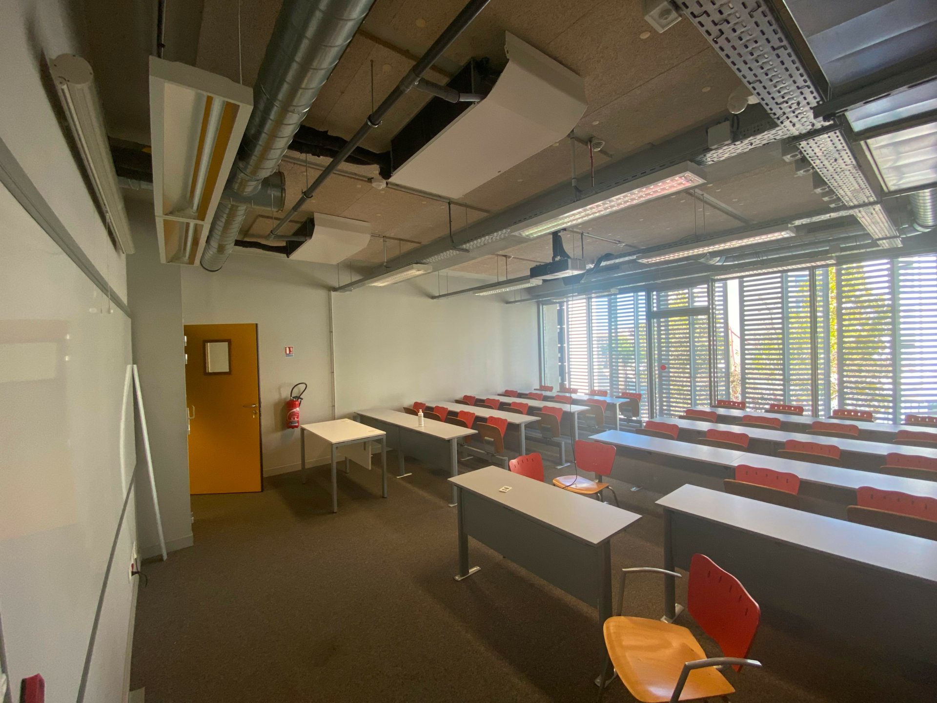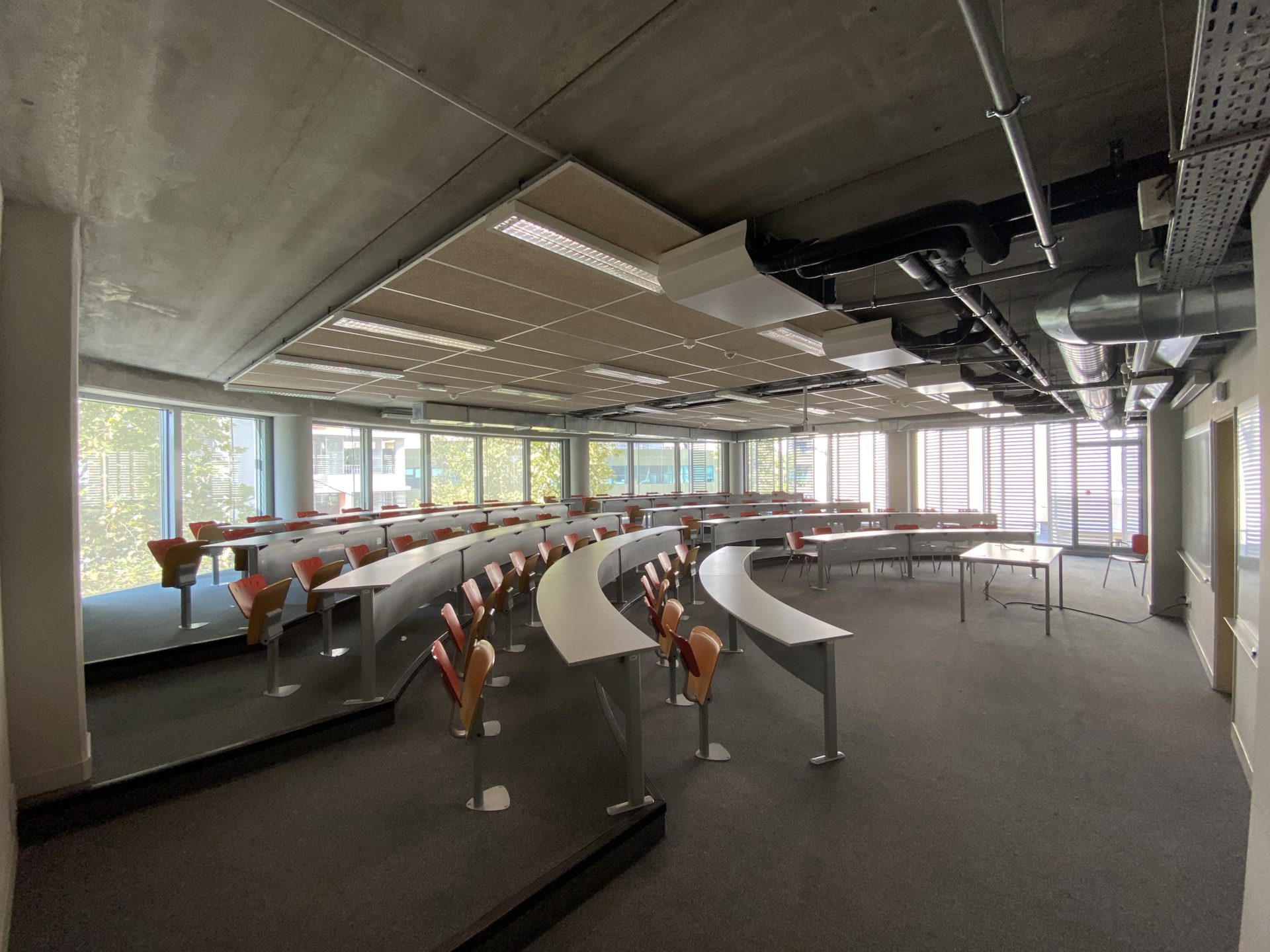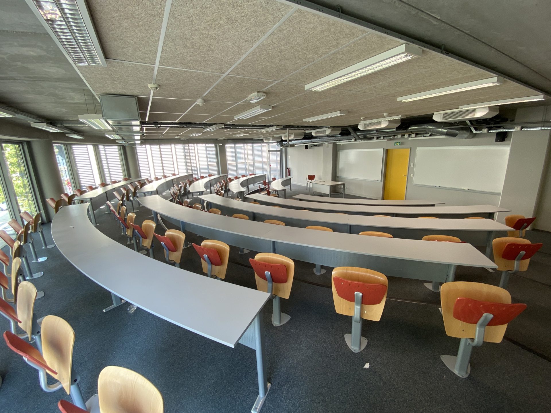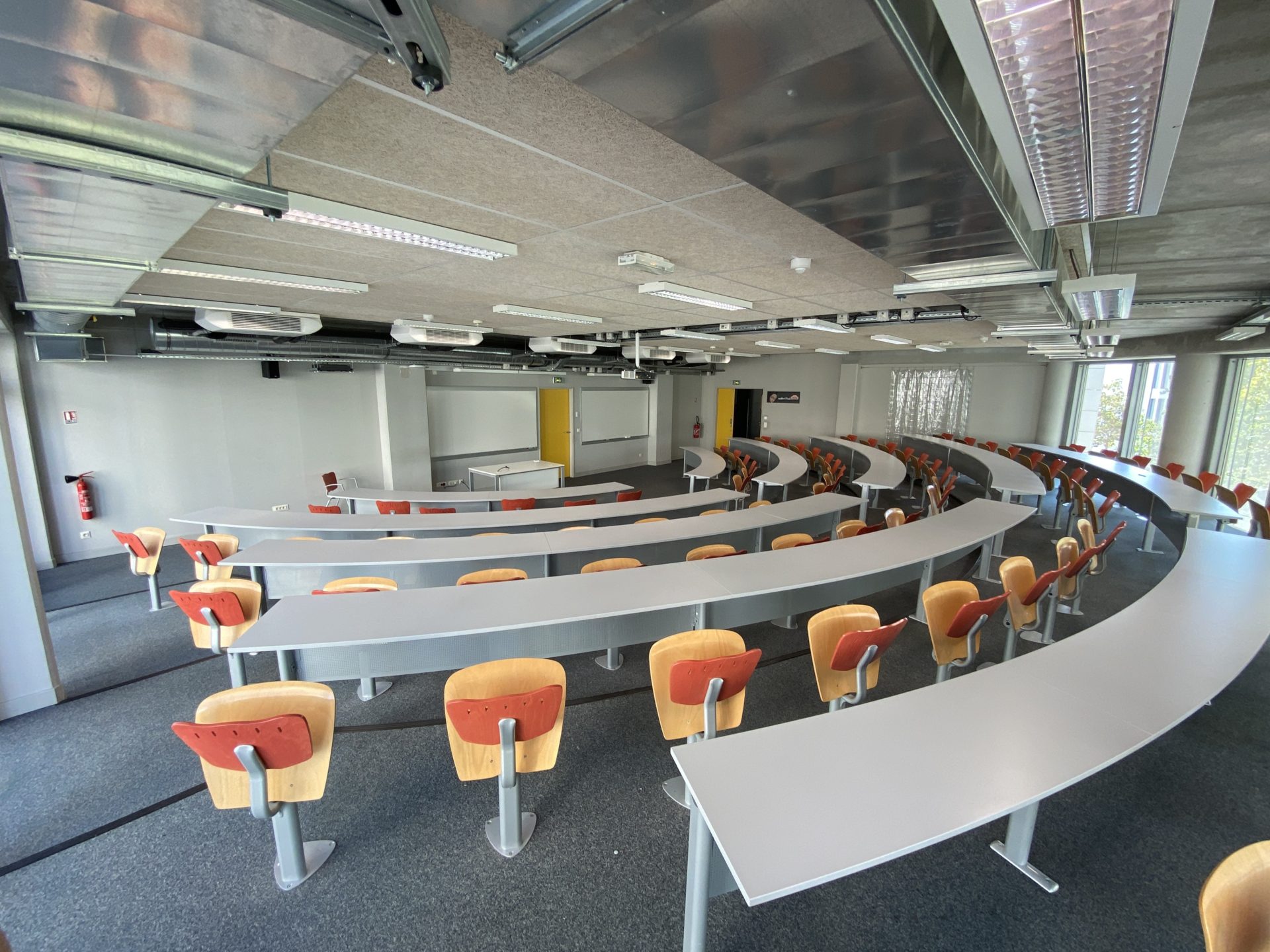3 Amphithéâtres hémicycles climatisés pouvant accueillir 80 personnes chacun, muni de 2 tableaux ainsi qu’un vidéoprojecteur et sonorisation.